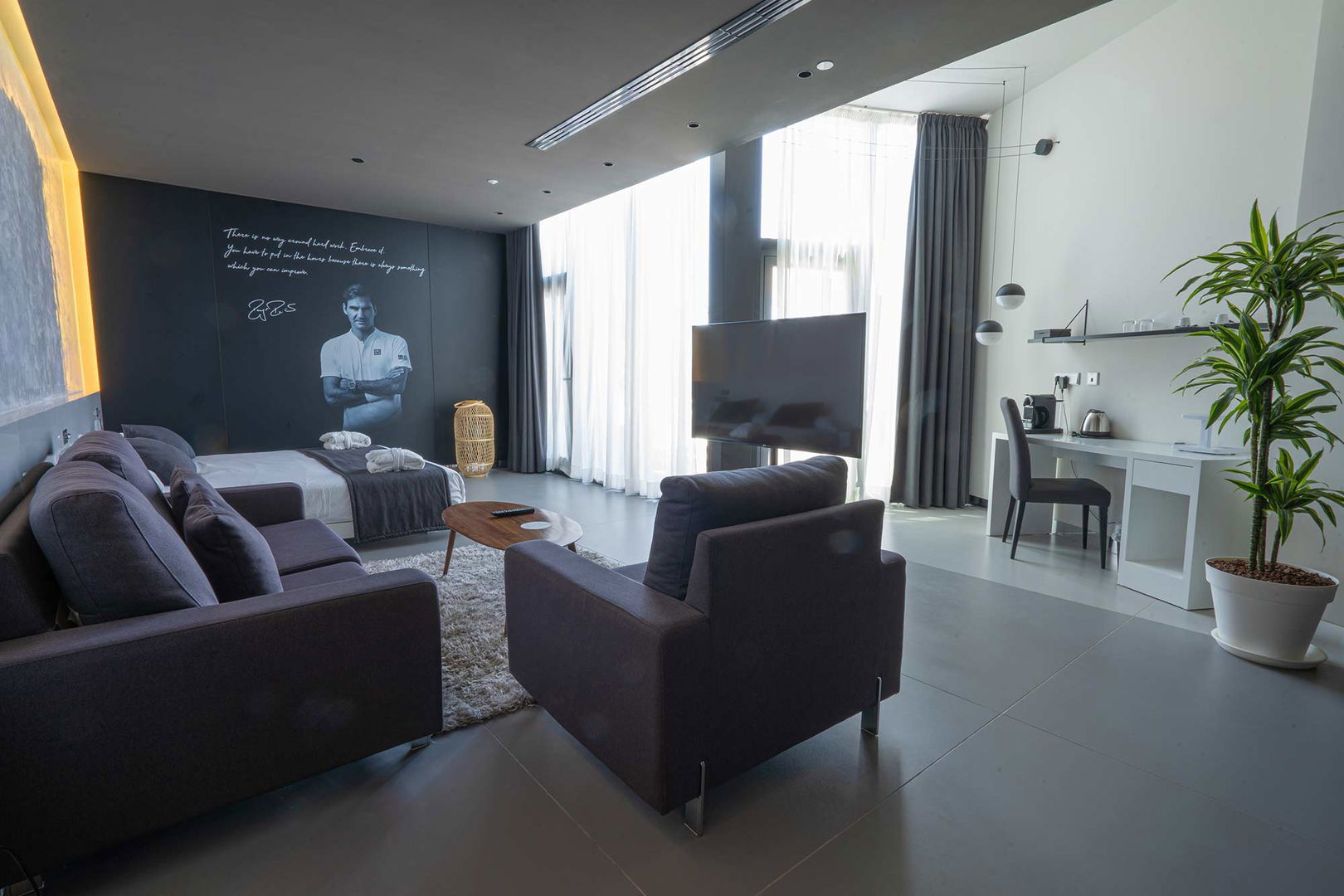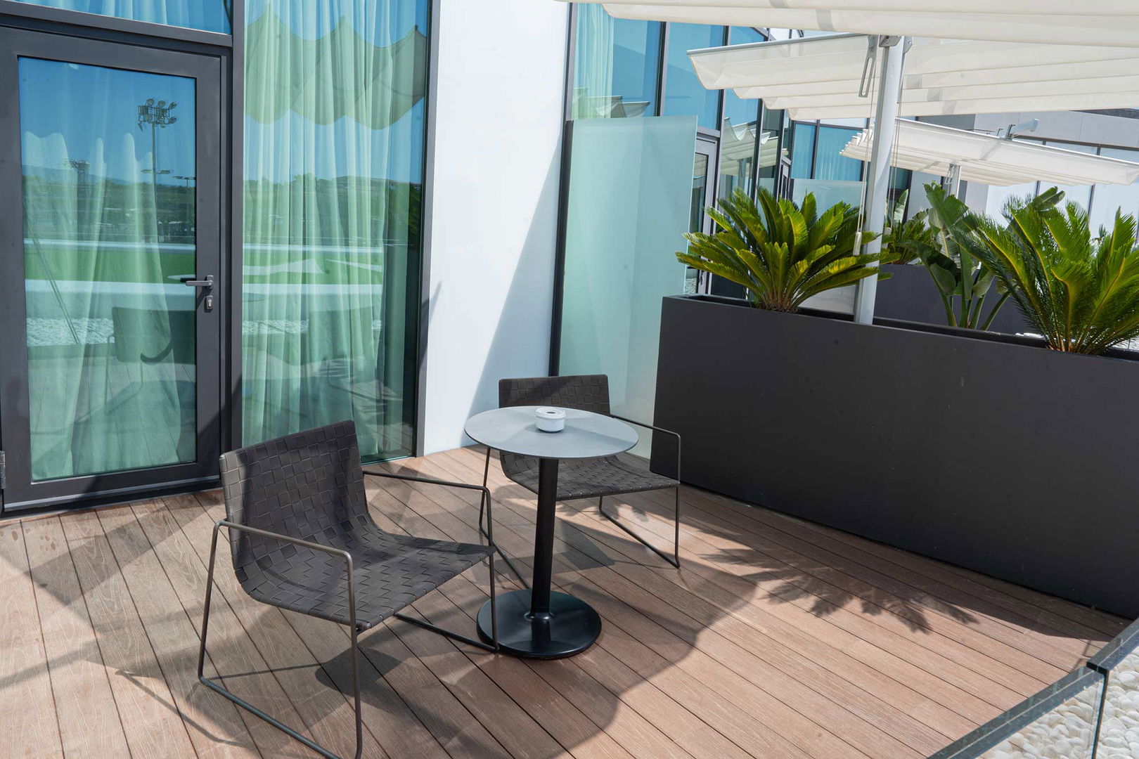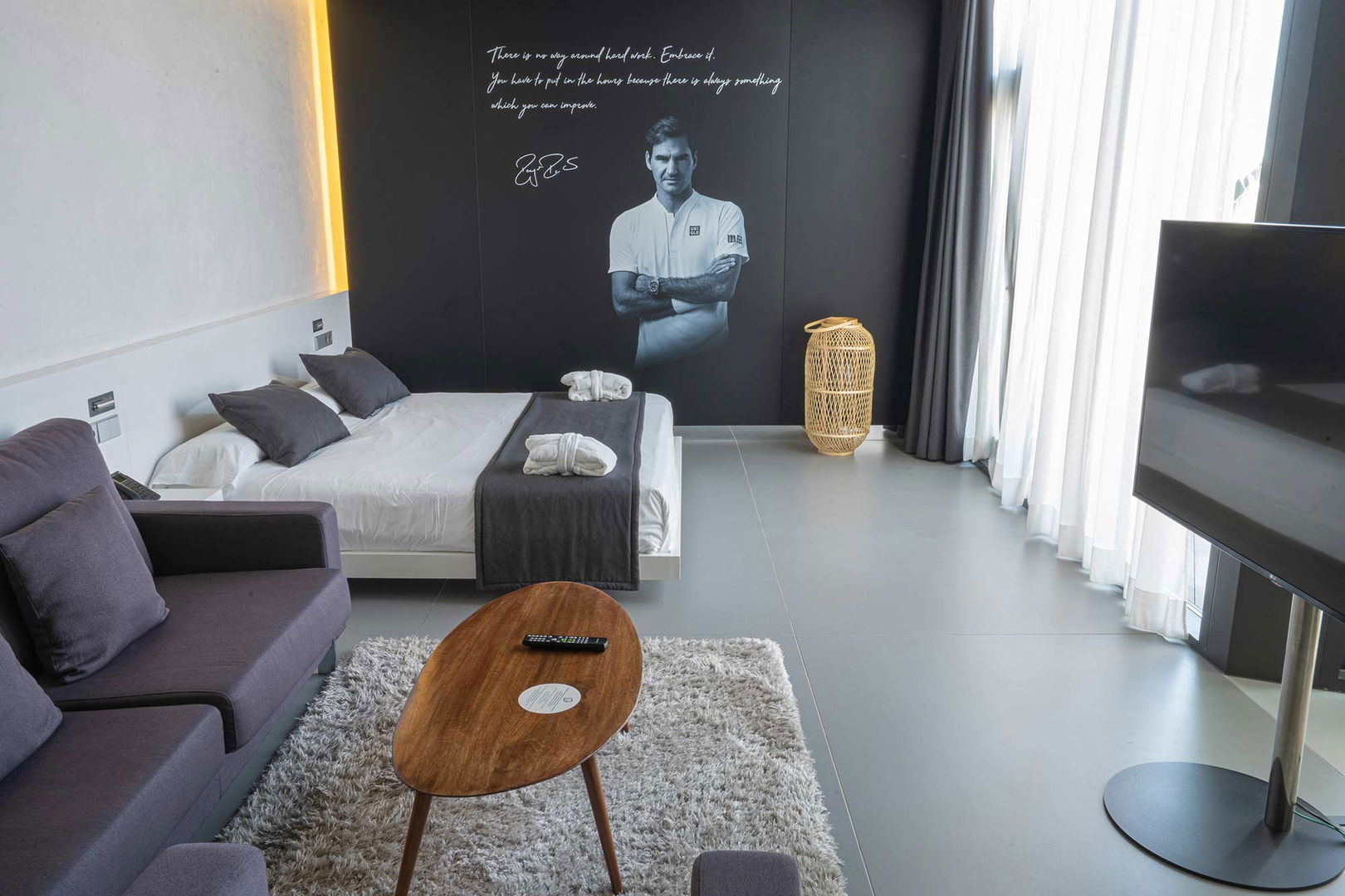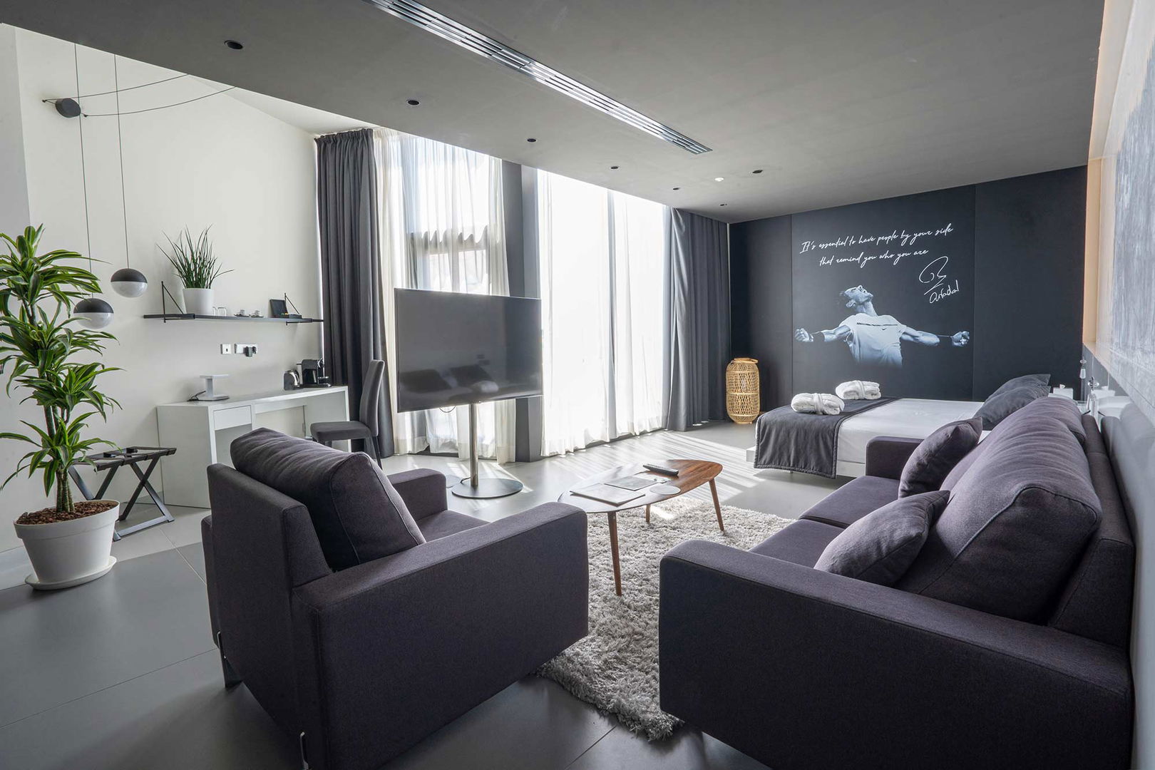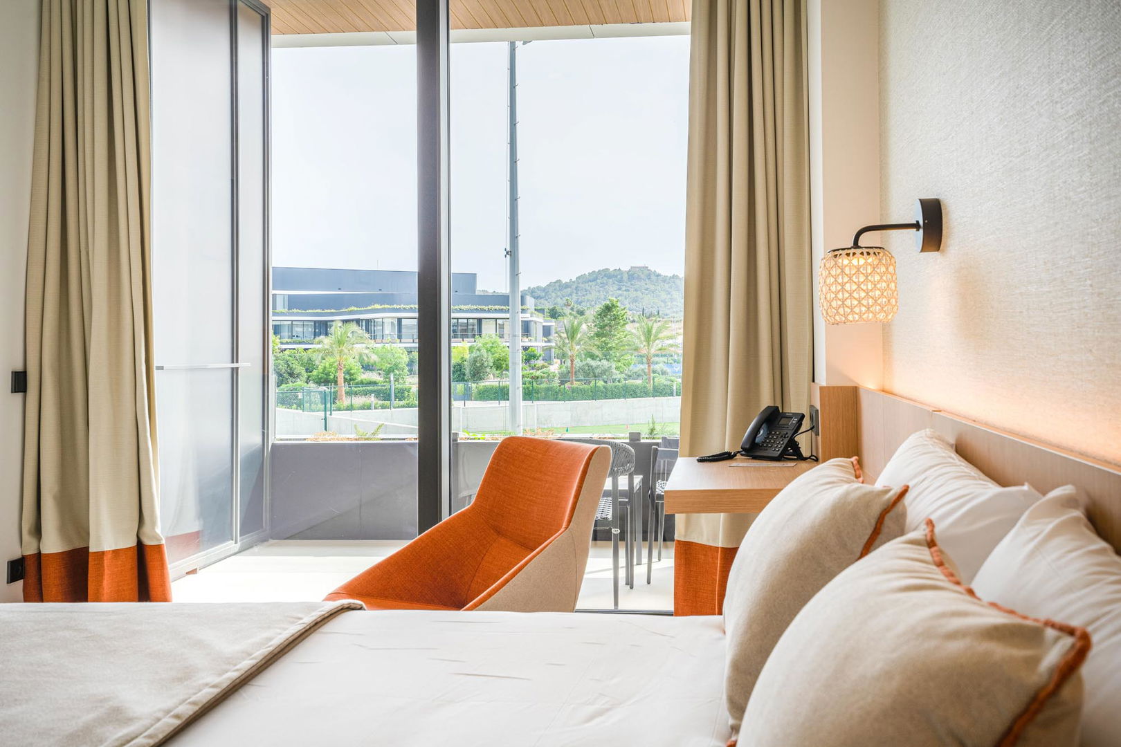Enjoy free WIFI, a flat TV screen and a variety of amenities such as a mini bar, robes and slippers. You also get free access to our 3,000m2 fitness centre with Technogym machines, semi-Olympic indoor pool, outdoor pool and an exclusive Spa with a hydrothermal circuit, sauna and steam bath.