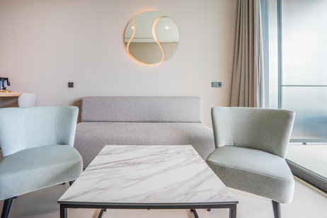 Disfruta de conexión WIFI gratuita, TV de pantalla plana y una multitud de amenidades como minibar, albornoz o zapatillas. Durante tu estancia también tendrás acceso libre a nuestro fitness centre de 3.000m2 con sala de máquinas Technogym, piscina interior semiolímpica, piscina exterior y un exclusivo Spa con circuito hidrotermal, sauna y baños turcos.